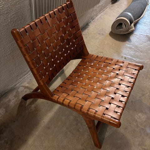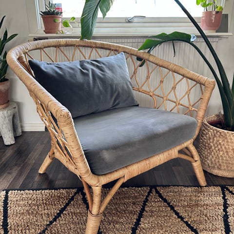Säljer en elegant Newport fåtölj i klassisk design med svart träram och sits och rygg i rotting.