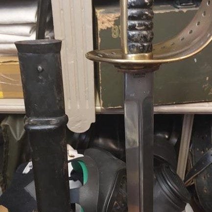 Fin svensk sabel m/1867 för manskap vid kavalleriet. Komplett med balja.