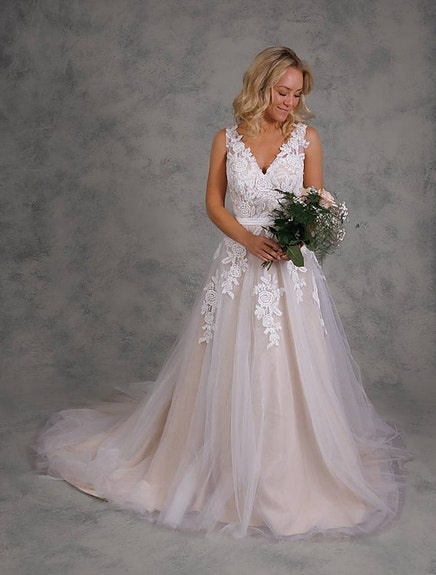 Denna vackra bröllopsklänning kan beställas i alla storlekar från 32 till plus size upp till 56 för 4500:-