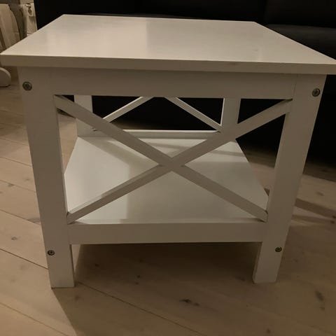 Stilrent soffbord i vitt med praktisk förvaring. Perfekt för vardagsrummet. 100*100
