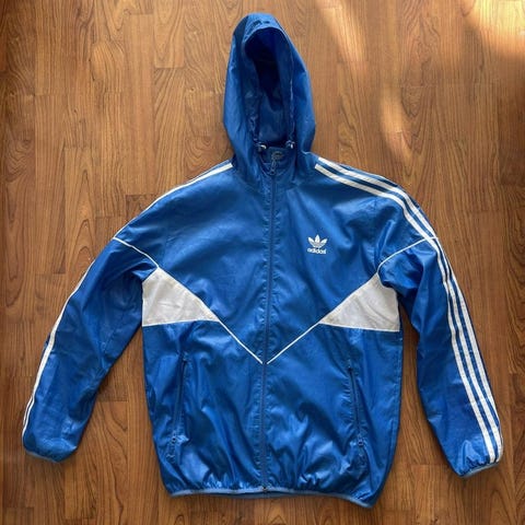Vindjacka - Adidas stl: 34 med fickor och ihopfällbar luva.
