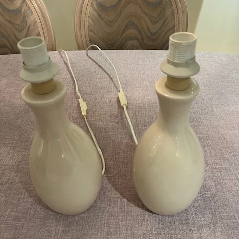 Säljer två maffiga, rosa bordslampor, omkrets på lampfot: ca 30 cm, höjd: se bild. Lampskärmarna behöver få tyg på sig (som medföljer) och på den ena lampfoten är glödlampshållaren lös, så den behöver fästas på något vis. Pris: 400 kr, vid snabb hämtning!