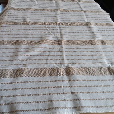 En fin beige matta av märket Strehög. Material: 100% bomull. Handtvätt 30°C. Torka mattan hängande med ränderna lodrätt.