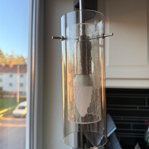 Säljer tre stilrena Manhattan takpendlar designad av Gunnel Svensson för Bsweden. Lampan är döpt efter den traditionella drinken Manhattan då formen påminner om ett dricksglas. Den har ett enkelt utseende i glas med ett frostat band som dekorativ detalj och är 50 cm hög.