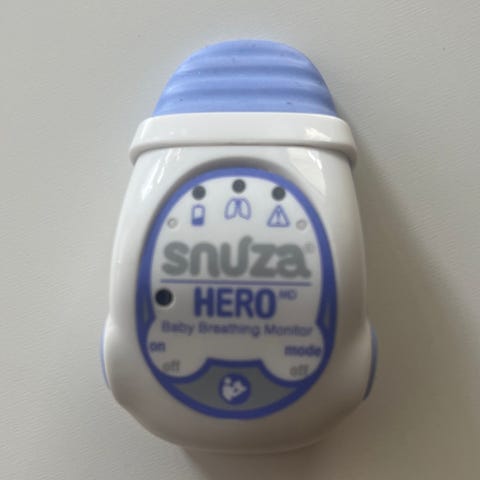 Andnings- och rörelselarm från Snuza för bebis, fästes på blöjkanten.