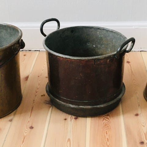 gammal kopparkittel tvättkar bykkar kar balja av koppar med tapp kran
