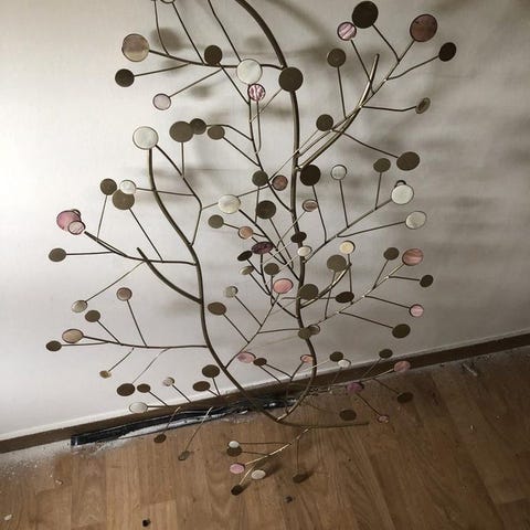 Mycket fint väggskydd/sängskydd i tunna faner ribbor 60-tal.