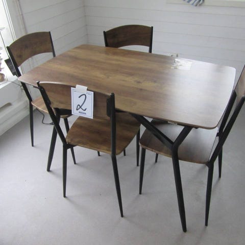 4 staplingsbara stolar och ett bord i björkfaner