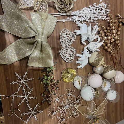 6 st fina julgranshängen som ligger i en påse. ø ca 6 cm på de runda och stjärnorna och hjärtat. Kvisten är 8 cm lång och ca 3 cm bred. Fina i granen och på julklapparna. Kan hämtas på Fridhemsgatan vid Fridhemsplan.