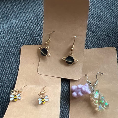 Olika roliga och fina örhängen för hål i öronen. Kanske något inför julfesten. 10 kr/paret. Kan hämtas på Fridhemsgatan vid Fridhemsplan.