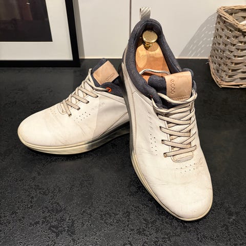 Riktigt snygga golfskor i vitt med röda detaljer. BOA snörning, för perfekt passform.Lätta och smidiga. Storlek 42.