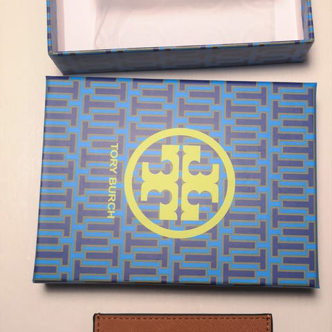 Mörk röd crossbody väska/wallet från Tory Birch. Nästintill oanvänd så i nyskick. Läder/skinn med mocka detalj. Justerbar axelrem som även går att ta bort. Många bra fack varav ett med dragkedja och plats för 6st kort. iPhone mobil får plats utan problem.