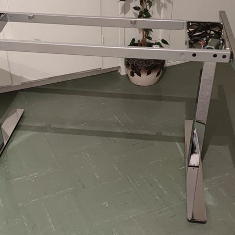 Säljer endast bordsstativ då jag inte längre har bordsskivan. Perfekt till DIY projekt eller liknande då man kan köpa till en bordsskiva och enkelt sätta på. Medföljer en platta som man kan klistra på undersidan av bordsskivan.