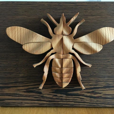 Träskulptur av Gunnarsson föreställande Olof Palme