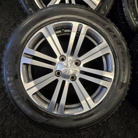 Säljer en uppsättning 4st Peugeot originalfälgar 15” med vinterdäck dubbat.