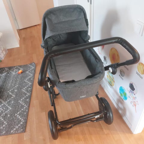 Nu säljer vi vår fina pärla. Britax Go Next. Det finns både ligg- och sittdel och det tillkommer adaptrar till bilstolar (finns flera st som funkar till olika märken). Den har varit kanonbra att köra, bekväm, lätt att sitta och ligga i, lätt att stänga och demonteras.