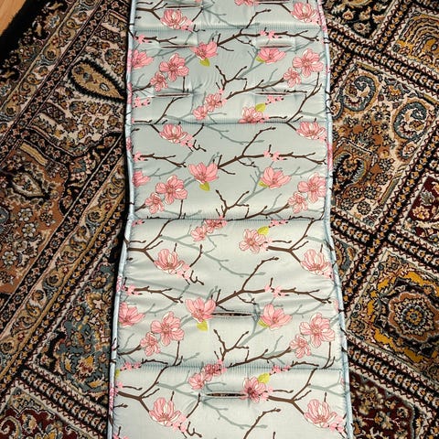 Sittdyna med tillhörande axelrems muddar. Använd få gånger här sen ja köpte dom nya.