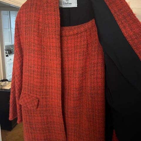 Äkta vintage kavaj för kvinna, tillverkad i USA av märket Prophecy. Väldigt fint skick. Brun satängtyg inuti. Storlek "Size 4", passar en storlek S/M. 100% rayon. Med kraftiga axelvaddar och fina metalldekorerade knappar.