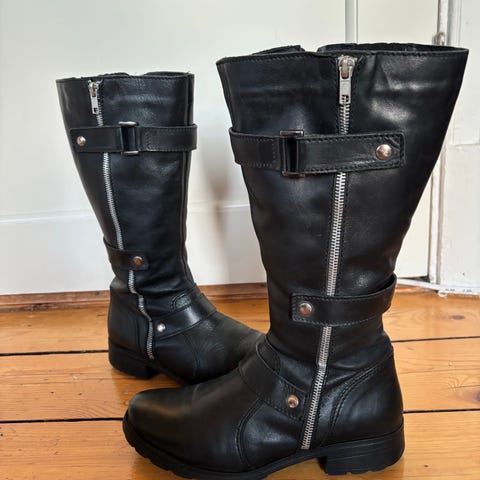 Eleganta stövletter i mjukt läder i väldigt bra skick. Träklackskor med en mjukare gummisula som dämpar ljudet och minskar glidningen. Storlek 36.