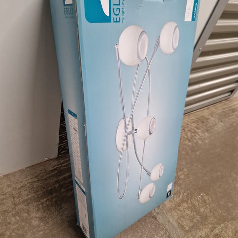 Taklampa med utsida i svart tyg. Insida i blank mörk brons. 5 stycken ljuskällor. Dia skärm: 50-55 cm Höjd skärm: 37-38 cm Kartongen kvar. Nypris 7900 kr