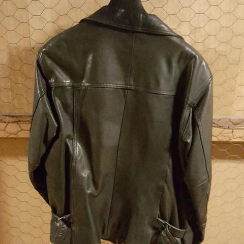 Skinnjacka i fin mjuk nappa med avtagbar luva. Storlek medium