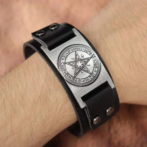 Armband vintage nordisk viking triangellogotyp. Konstläder.