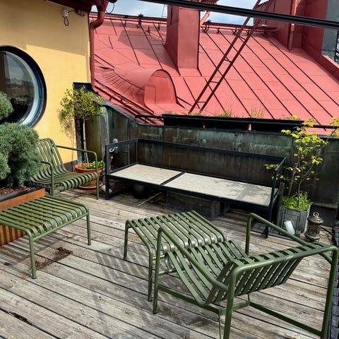 Trädgårdsgrupp från Fri Form designad av Elsa Stackelberg på 1960-talet. Fri Form är Kunglig Hovleverantör och en av Sveriges främsta tillverkare av trädgårdsmöbler.