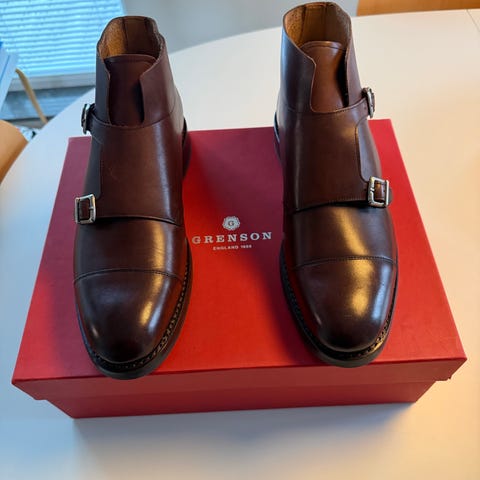 The Middle English from Aurora Shoe Co. A monk style flat featuring large cuts of leather and their trademark adjustable strap with a solid brass buckle. The breathable full grain leather upper and leather insole will stretch and mold to your feet for a custom fit with wear. Sits on top of a Vibram rubber sole.