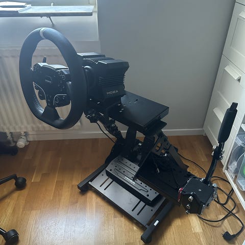 Inklusive Sparco R100 sportstol, förberedd för bältessträckare. Stativ för ratt ingår med.