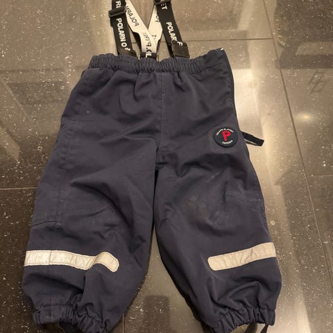 Marinblå skalbyxor Polarn o Pyret st 80 (9-12 mån) i mycket fint skick. Nästan helt nya hällor.