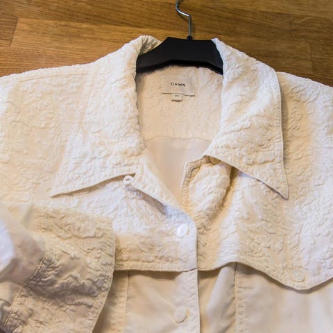 Storlek 40, midja ca 72 - 88 cm pga resår i midjan, beninnerlängd ca 78 cm, vikt ca 395 gram.