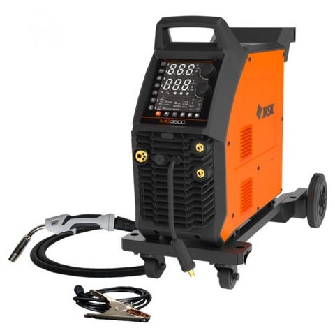 Kraftfull prestanda mad 4-hjulsdriven matning ger goda möjligheter att svetsa med fullgott resultat även med långa slangpaket. Digital display med tydliga och lättfattliga inställningar gör maskinen lättinställd även för oerfarna svetsare. Maskinen ger förutom MIG/MAG funktion även möjlighet till MMA (pinnsvets), de tillbehören säljs separat.