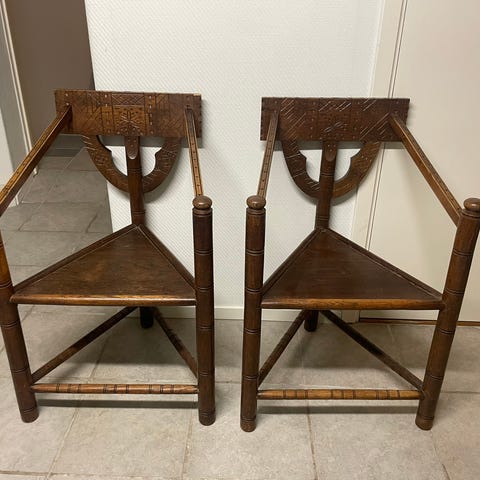 Stolarna har en klassisk design med detaljerad träutsmyckning och stoppad sits. Passar som dekorativa möbler i hemmet. Priset gäller för båda stolarna!