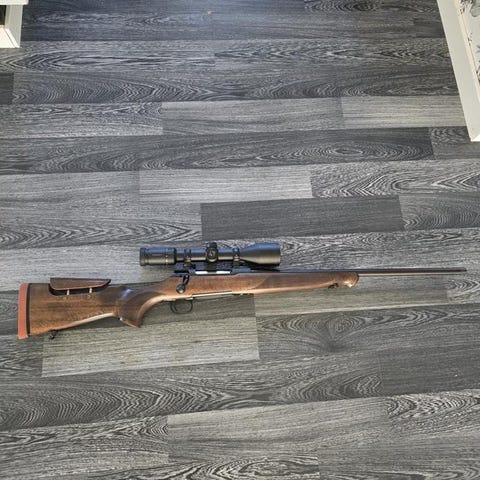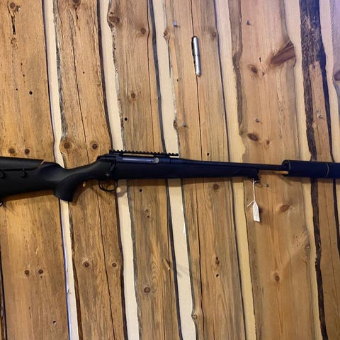 Begagnad Sauer 200 i kaliber 6,5x55 med gängad pipa M14x1. Extra pipa i kaliber 9,3x62 följer med, denna är gängad M15x1.