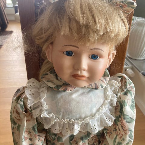 Frisördocka med äkta hår, minns ej när eller vart den är köpt.
