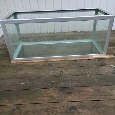 Akvarium som varit torrlagt i flera år så jag rekomenderar att det endast används som terrarium. Mått, höjd 50 cm, bredd 120 cm, djup 40 cm. Sand, stenar, pumpar, värmare och en massa andra tillbehör följer med.