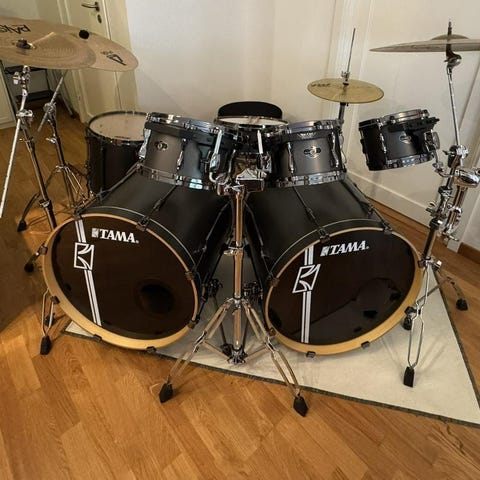 Tama Rockstar MIJ 12” 13” 16” 22” inkl originalvirvel 14x6,5” stativpaket och cymbaler Beg.: 6900kr
