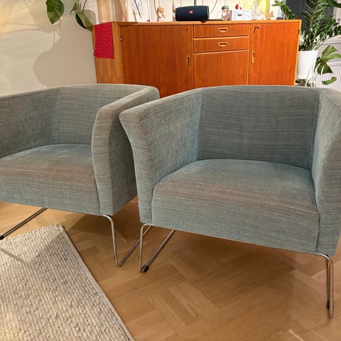 Säljer en grå Impulse 80 LUX fåtölj från Sits. Stoppning: kallskum, dun och silikon.