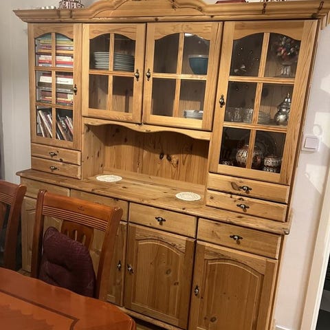 Ett vitrinskåp i furu