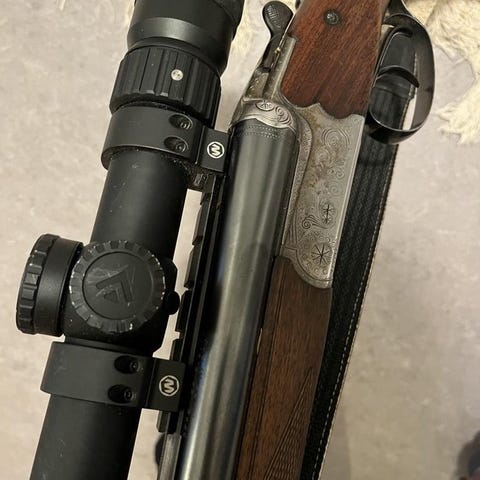 Hakmontage med leupold 2-7 som alltid varit skottfast! Justerbart snälltryck, perfekt som vakbössa eller för att snabbt kunna skifta mellan sikte och öppna riktmedel under jakten.