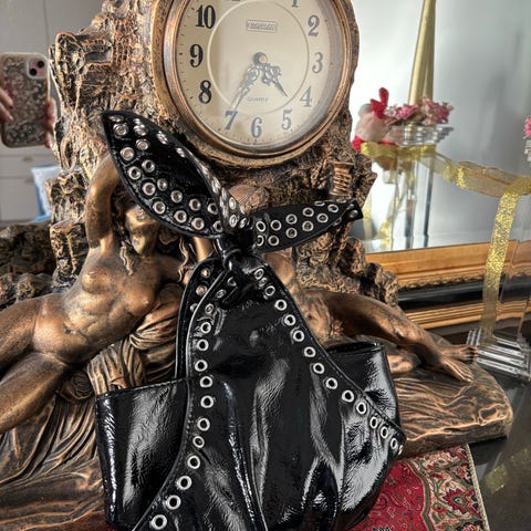 1. Väska från Zara i mockaimitation, med kedja, nitar och tre fack, varav ett med dragkedja.