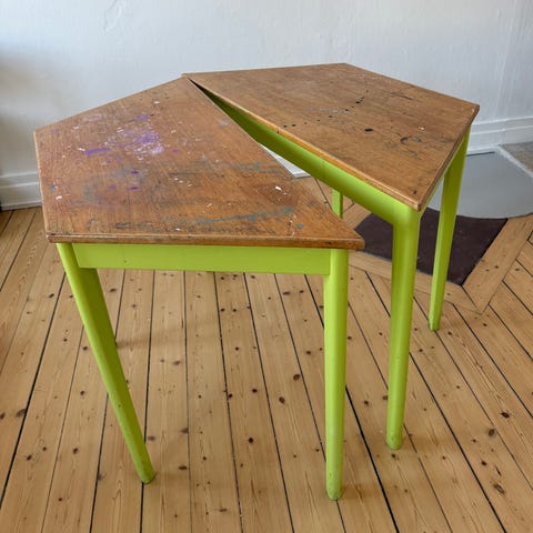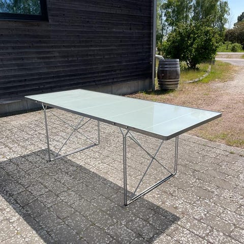 Har fått ett arbetsbord för fyra månader sedan. När jag fick den var som ny, men den har stått ute och den har fått rost färge. Den är stor och har åtta ben.