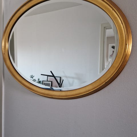 Lite lyxig spegel med en tjock guldfärgad ram. Pryder verkligen sin plats i hemmet.