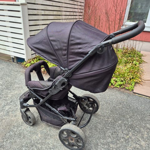 Vagnen är använd men i bra skick. Stabil och skön att köra. Handtaget är nött enligt bilder. Fotbromsen kan vara lite trög ibland men fungerar. Kan ordna fler bilder om önskas.
