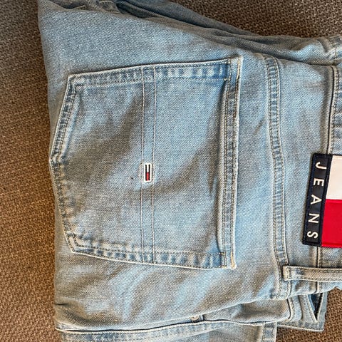 säljer ett par mörkblå jeans från Lacoste.