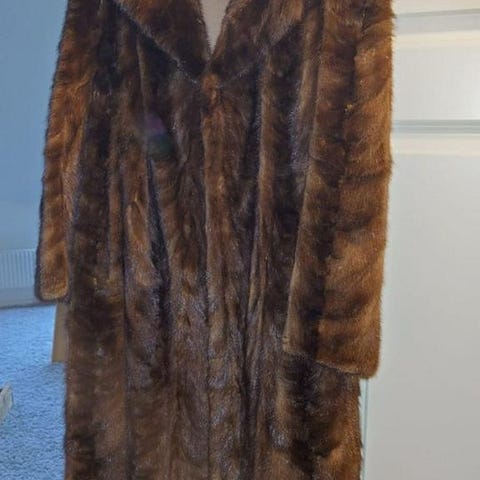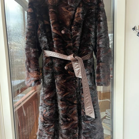 Hel och fin minkpäls med sido fickor och skinn skärp och skinnitalier