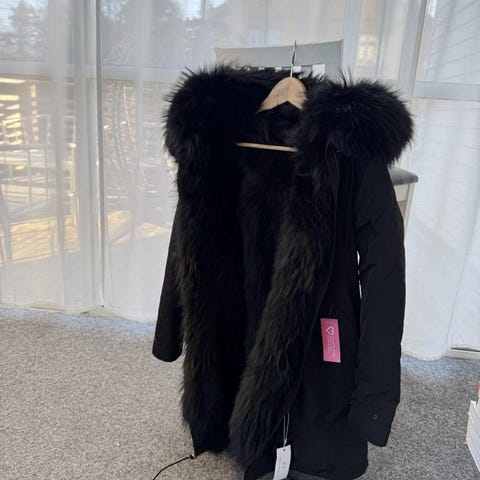 Hel och fin pälskappa nutria.med sido fickor