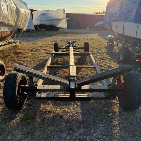 Båtvagn tidigare för 1,4 ton långkölad segelbåt (Magnifik Midget). Vanlig koppling,dragkrok.