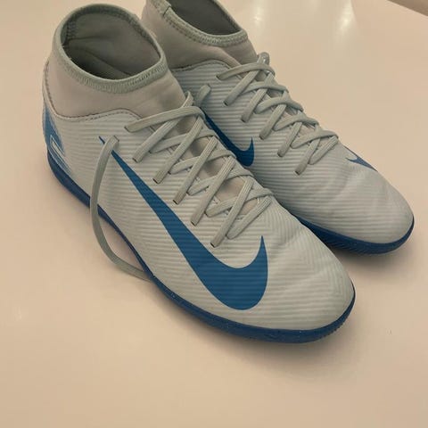 Fotbollsskorna är cirka ett halvår gamla och benskydden bara några månader. Benskydden är som nya och fotbollsskorna är bara lite smutsiga men utan några skador eller slitningar.
