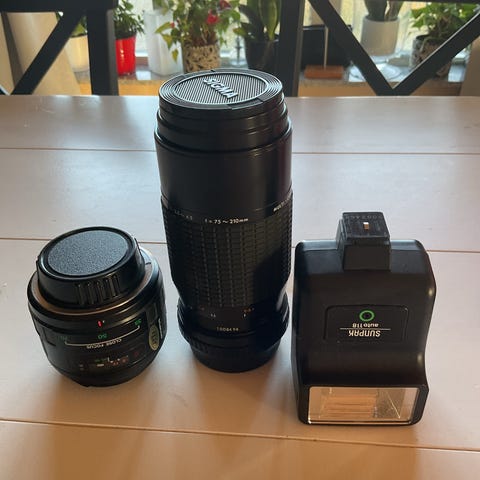 Säljer ett Olympus OM-System Zuiko Auto-Zoom 35-70mm objektiv. Tillverkad i Japan. Objektivet har en brännvidd på 35-70mm och en bländare på 1:4. Ett France Filtre 55mm filter är inkluderat.